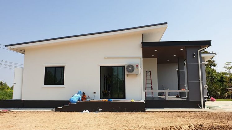 ข่าวใหม่สวัสดีเพื่อนสมาชิก และทุกท่านผู้สนใจแบบบ้านสวยหรือกำลังจะสร้างบ้าน มองหาแบบบ้าน ไอเดียสำหรับสร้างบ้าน สำหรับบ้านหลังนี้การออกแบบเป็นบ้านชั้นเดียวสไตล์โมเดิร์น หลังคาแบบทรงแหงนเล่นระดับสวยงามเข้ากับรูปทรงตัวบ้านแบบตัวแอล L-Design ตัวบ้านยกพื้นสูงเล็กน้อย หน้าบ้านมีระเบียงพร้อมทำเป็นม้านั่งเล่นพักผ่อน ผนังภายในนอกแบบปูนฉาบเรียบโทนสีเทาตัดขาว บ้านหลังนี้ผลงานออกแบบและก่อสร้างโดยคุณ อาทร น้อยคำลือ ติดตามชมกันต่อเลยครับ
