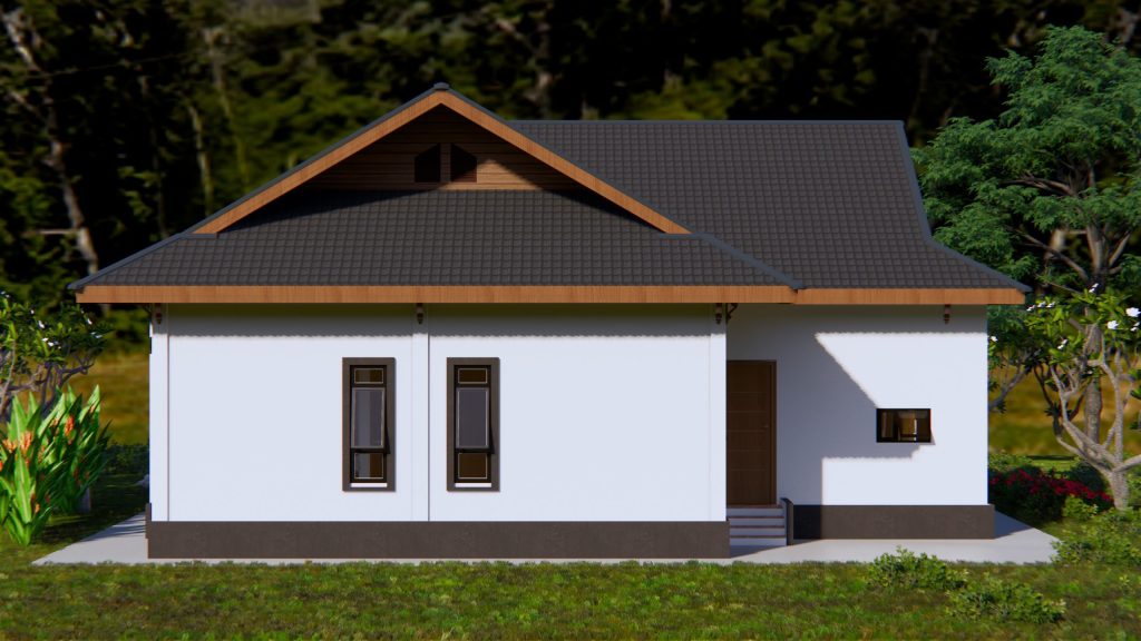 ข่าวใหม่ 2 สิงหาคม 2022 บ้านพักอาศัยหนึ่งชั้นสไตล์บ็อคกล่อง 2 ห้องนอน 1 ห้องน้ำ ระเบียงด้านข้างดาดฟ้า